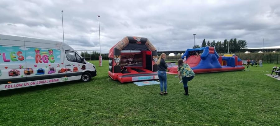 This is our 12ft x 12ft Custom West Bank Bears ARLFC castle and is a beautiful castle to enjoy any day. all of our castles are regularly checked and tested and also cleaned before or after every use as we pride ourselves on delivering the best products but also; as standard they will come fresh and clean and set up safe every time. all of our castles come with a rain cover as standard to protect from light showers, and to top all that off we do not require a deposit on a booking and will accept payment on delivery.