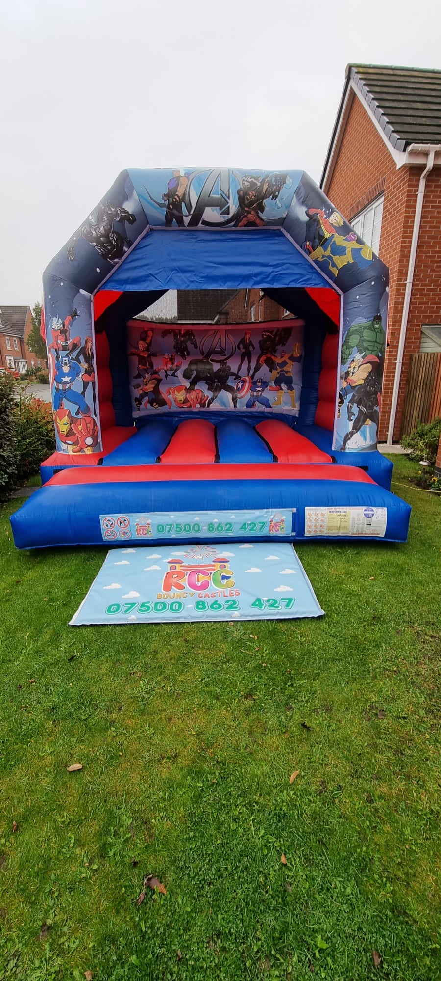 This is our 12ft x 12ft Marvel Castle and is a beautiful castle to enjoy any day. all of our castles are regularly checked and tested and also cleaned before or after every use as we pride ourselves on delivering the best products but also as standard they will come spotless and set up safe every time. all of our castles come with a rain cover as standard to protect from light showers.