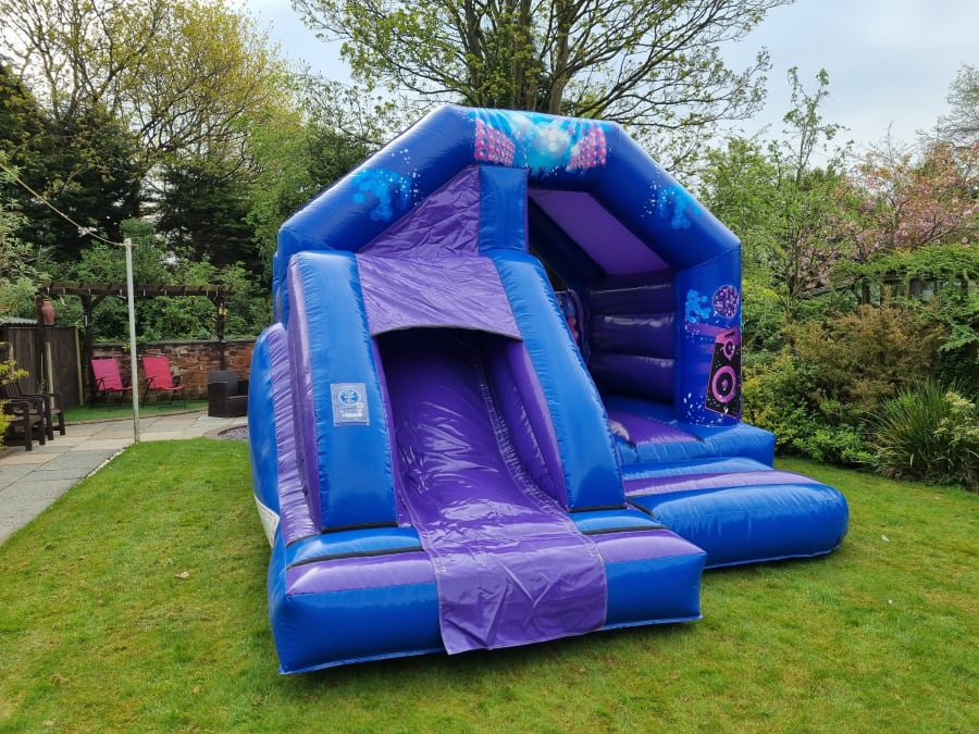 This is our Amazing combo Disco slide castle, measuring at 15ft in length and 12ft in width it is perfect size to fit in nearly all gardens. all our castles come safety tested and cleaned before and after every use to maintain the quality we aim up keep as a very minimum. this Castle is perfect for any party or celebration and is without doubt going to provide hours of fun and exercise for your active little ones.